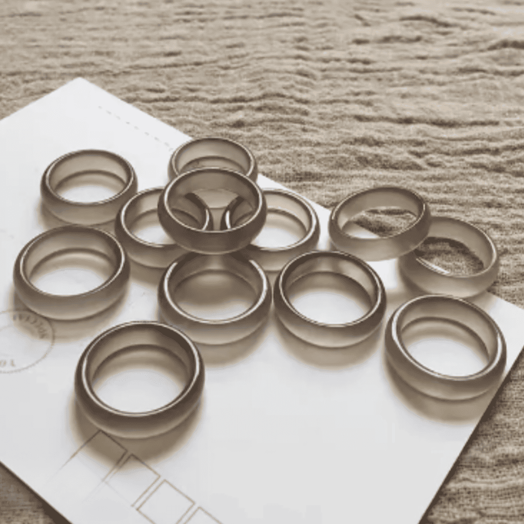 Aliança feita em pedra Ágata com acabamento na tonalidade fumê, ideal para quem busca elegância e resistência em uma joia natural.