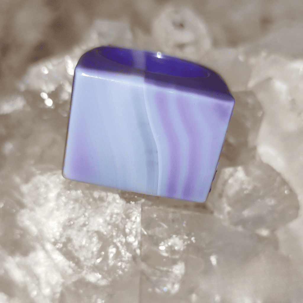 Um anel com pedra ágata roxa para quem busca coragem e estilo marcante.