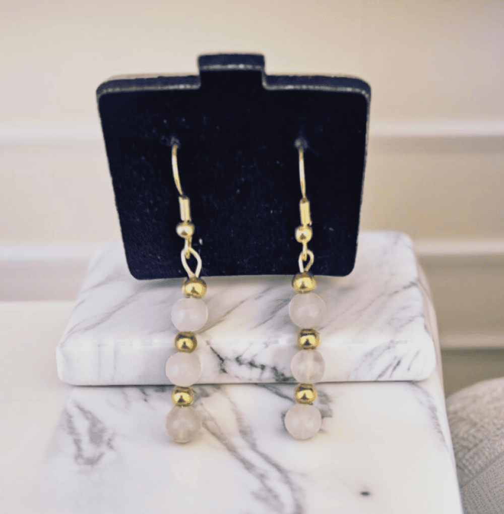 Brinco Banhado Pedra Quartzo Rosa - Amor, Harmonia e Beleza