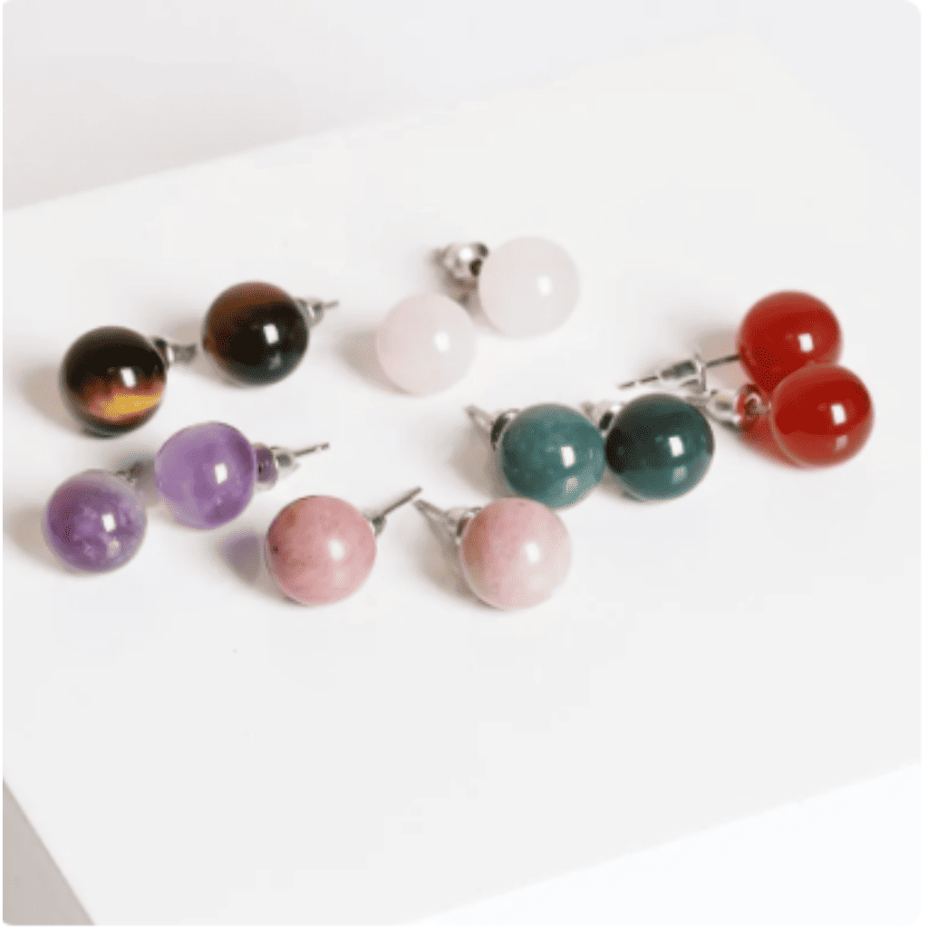 Brincos Esfera 8mm Banhados – Pedras Naturais e Reconstituídas