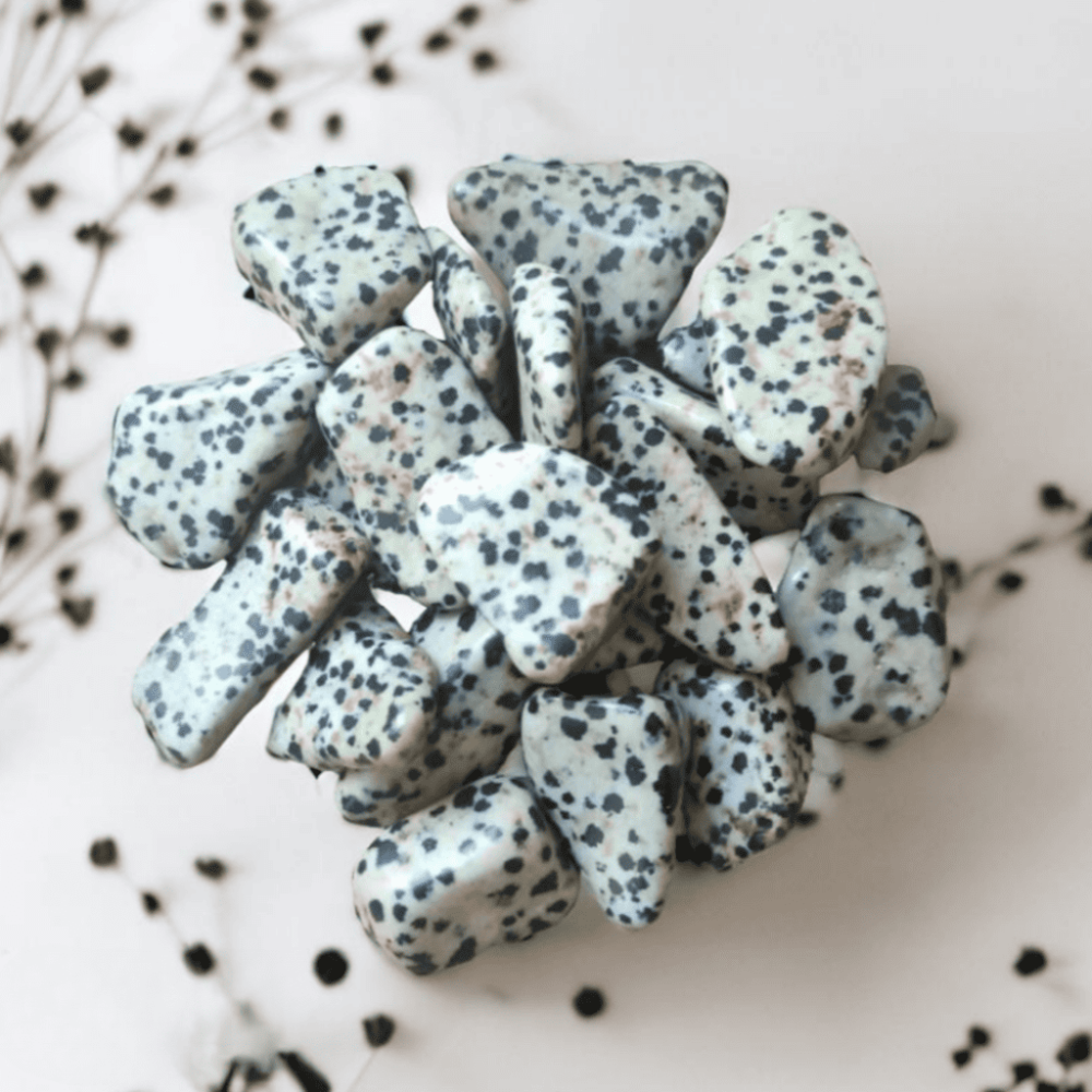 Jaspe Dálmata é uma pedra natural que desperta a nossa criança interior, trazendo energia positiva e equilíbrio para o dia a dia.