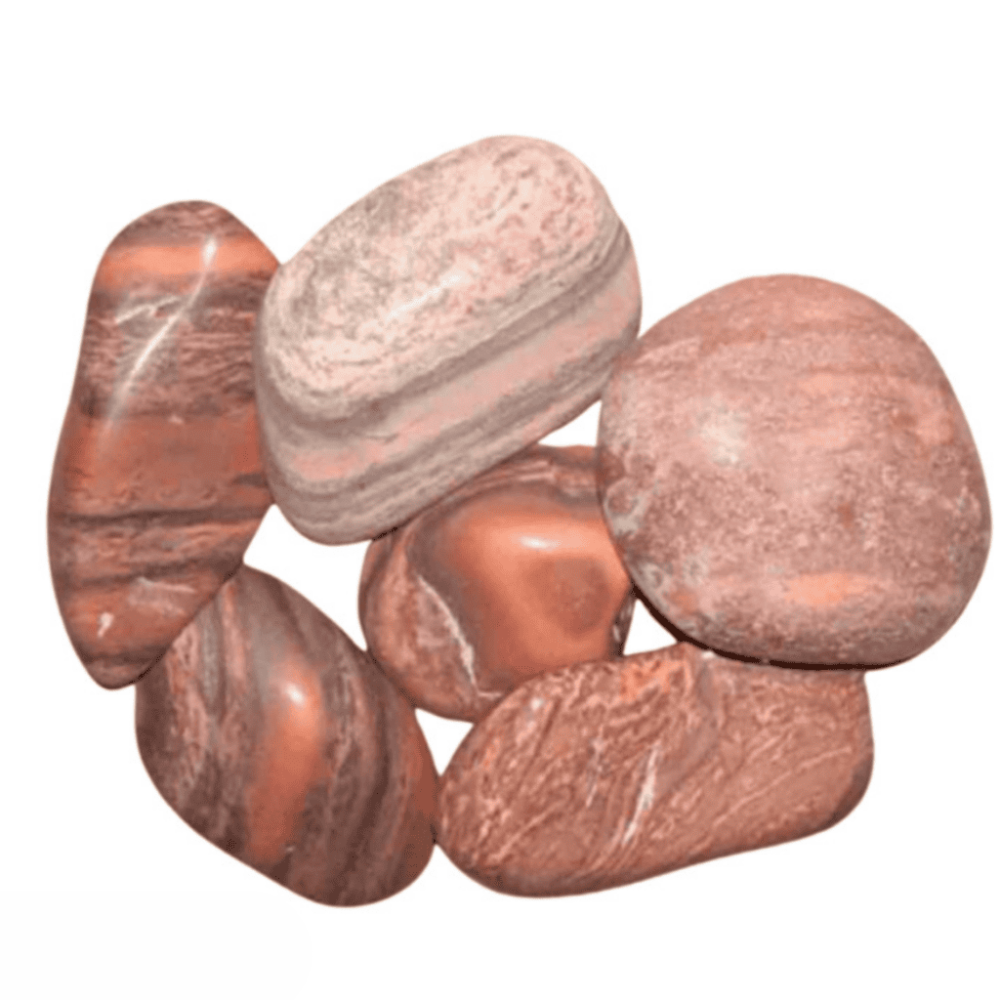A pedra Olho de Boi é encontrada em sua forma polida, marcada por suas faixas características em tons de vermelho, laranja e bege. É adequada para manipulação individual ou como parte de coleções esotéricas e de cristaloterapia.
