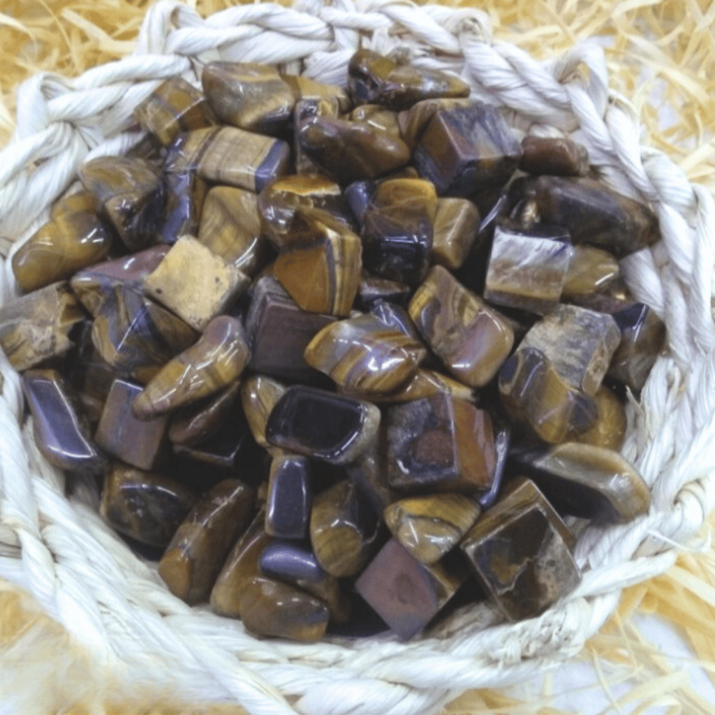 A pedra Olho de Tigre é reconhecida pela sua composição mineral que inclui quartzo e óxidos, garantindo sua resistência e brilho único, principalmente na versão rolada que passa por polimento.
