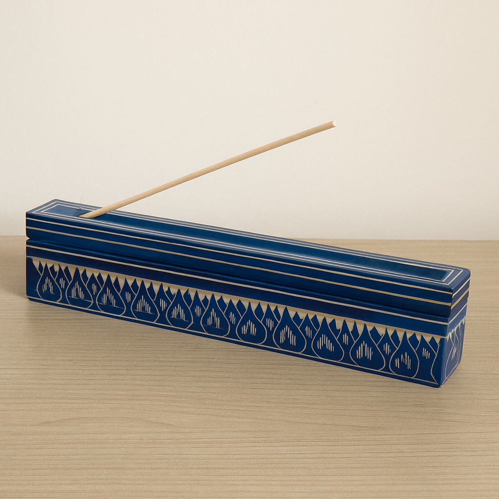 Funcional e elegante, este porta incenso em pedra sabão oferece uma base segura para queimar seus incensos com praticidade, e a caixa para armazenar seus incensos de forma organizada.