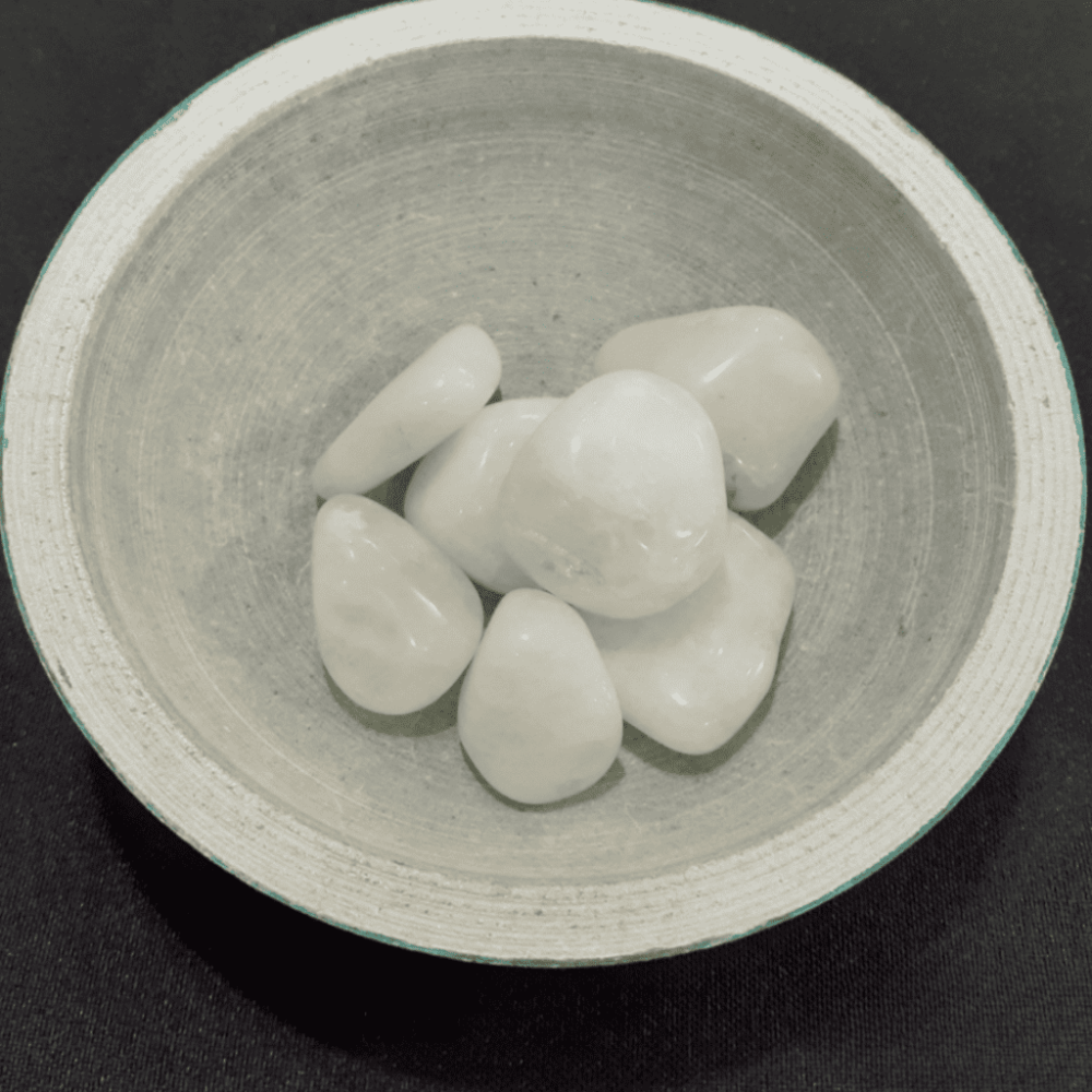 O quartzo branco rolado é uma pedra semipreciosa com acabamento polido que mantém sua textura natural e superfície lisa. A tonalidade branca e o brilho da pedra são ideais para quem aprecia cristais com presença discreta e elegante.